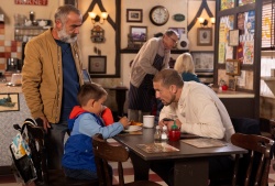 KEVIN STEPS IN TO SAVE THE DAY When Alfie’s nursery phones to say he’s poorly, Roy suggests Abi asks Carl to collect him, rather than cancel her counselling. Carl’s not pleased as Alfie refuses to engage with him. When they spot Kevin, Alfie’s thrilled so Carl seizes the opportunity to offload him.