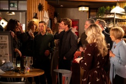 TODD’S LEFT OUT IN THE COLD The guests gather in the bistro for George and Glenda’s joint party. Nick chats to Todd and suggests they go for a run together. When Sarah lets slip that Nick was Todd’s first ever crush, Theo glares over at them. Christina’s annoyed to discover Glenda failed to order a cake. Theo tells her that he and Todd will go and fetch one. As he steers Todd towards the door, Billy watches with concern. Having collected the cake, Theo rounds on Todd for flirting with Nick. Todd tries to reason with him but Theo climbs in the car and drives off leaving Todd stranded.